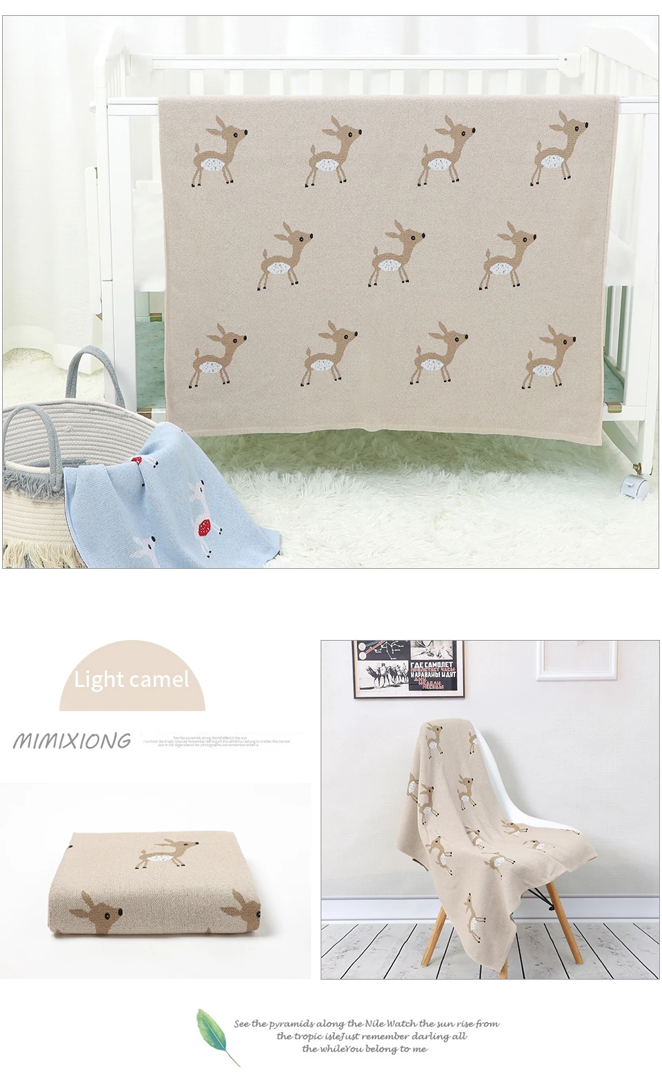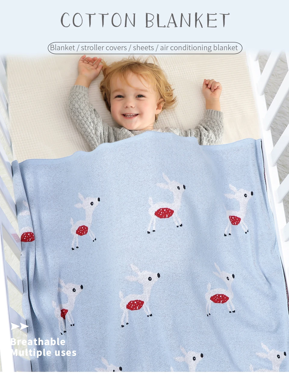 Wrap your little one in timeless comfort with our Soft Cotton Knit Cute Deer Baby Blanket. Featuring an adorable cartoon deer design woven into gentle, breathable cotton, this high-quality blanket adds a charming and cozy touch to any nursery.