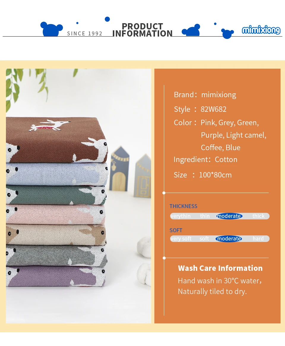 The premium knit texture and whimsical design make it a perfect fit for modern nursery themes. Versatile enough for stroller walks, tummy time, or as a soft nursery layer, it is designed to stay soft and skin-friendly with every wash.