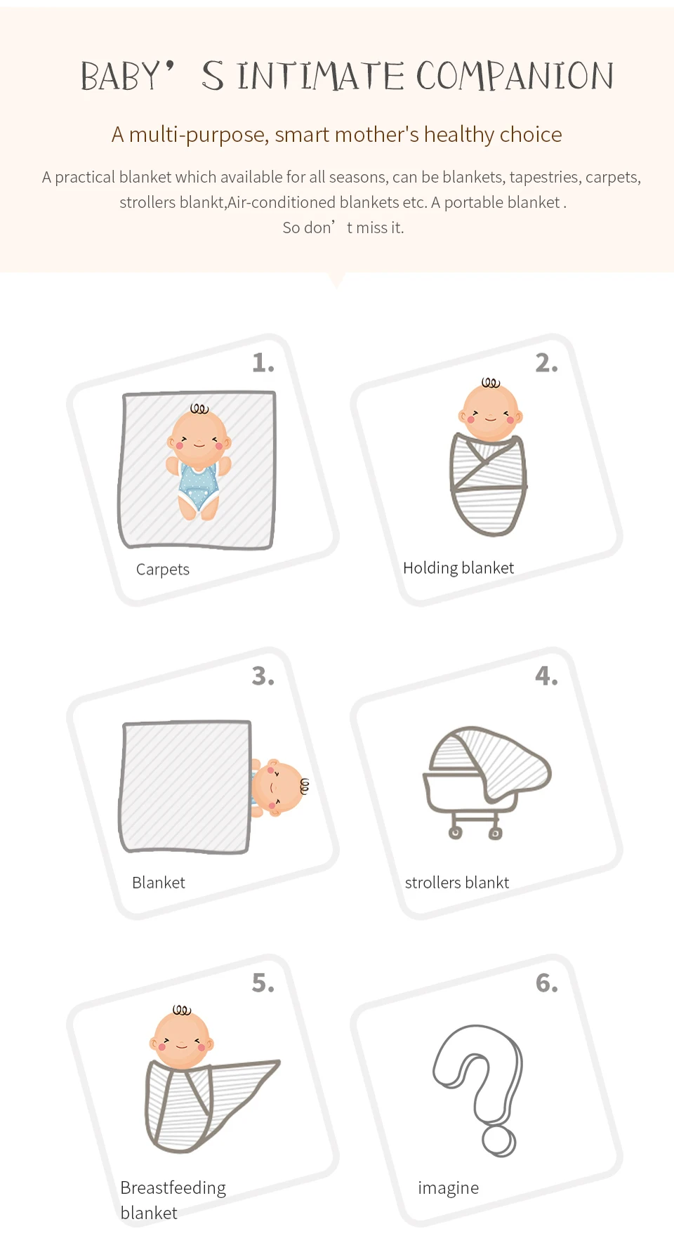 - Multi-Purpose: Sized perfectly for stroller use, nursing covers, or crib bedding.