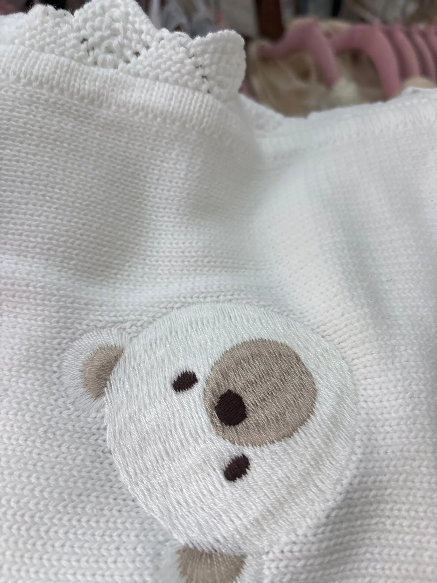 Heirloom Bear Baby Blanket - 100% Cotton Knit with Lace Border