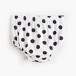 - The bottoms are polka-dot bloomers with an elastic waistband.