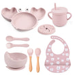 Baby Feeding Set - Make mealtime safe and fun with this 1/4/9 pcs baby tableware set. Made from soft, BPA-free silicone, these bowls, plates, and spoons are gentle on your baby’s skin and teeth. The non-slip suction base keeps dishes securely in place, reducing spills and messes. Perfect for babies and toddlers learning to self-feed.
