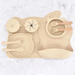 - The children's tableware set is made of soft silicone material, high density, strong elasticity, and will not deform or break when pulled at will.
