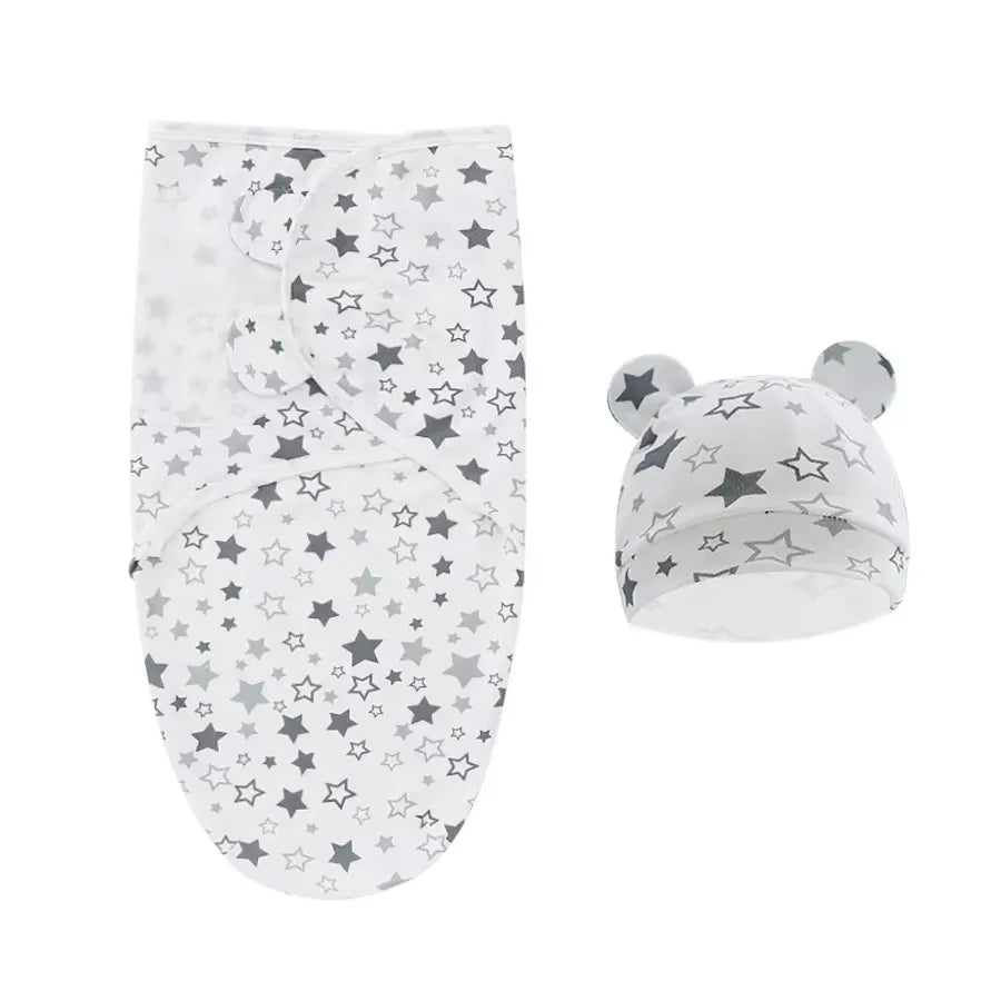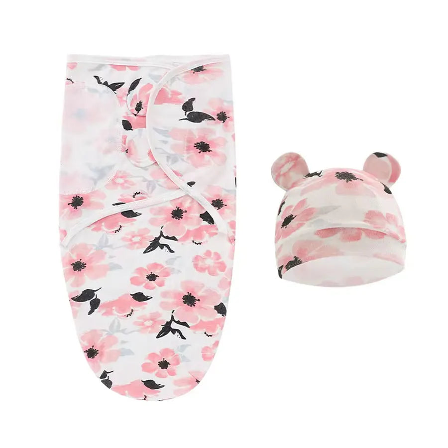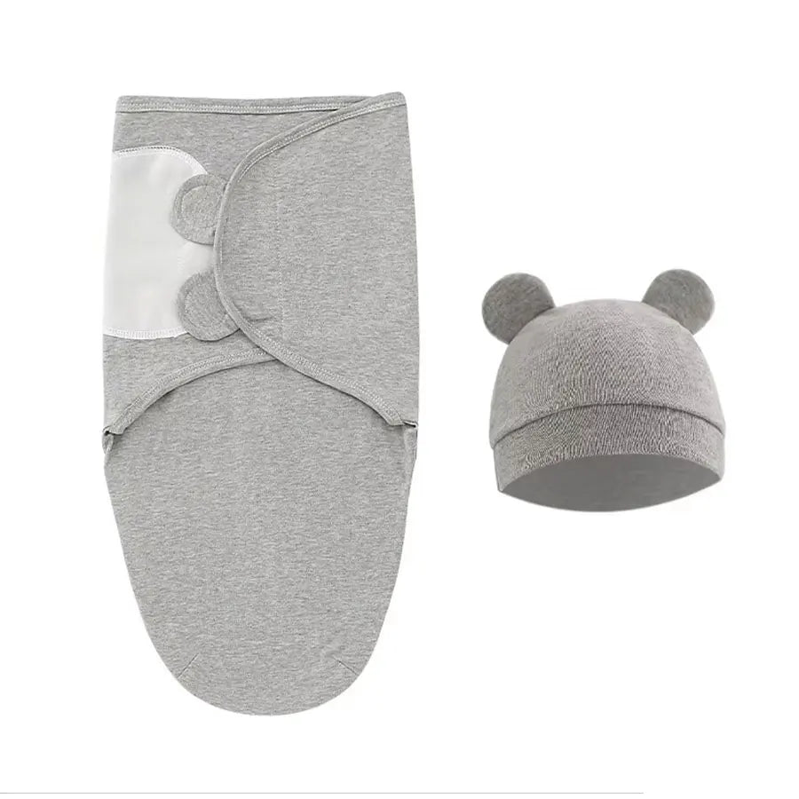 Soft & Cozy Baby Blanket Cap Set – Perfect for newborns aged 0-6 months, this adorable cartoon-printed cotton set keeps your baby warm and comfortable.