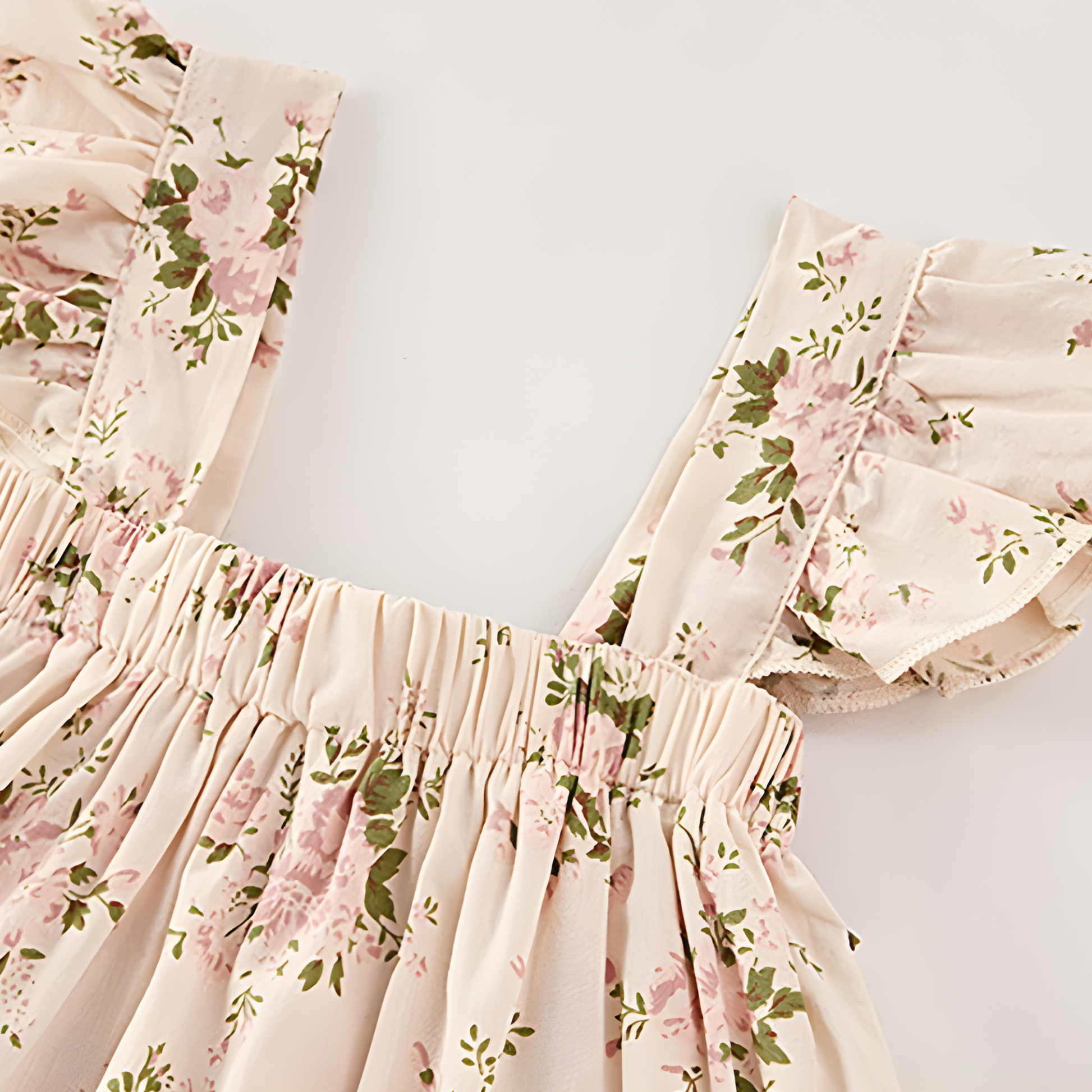 Capture the essence of a blooming meadow with our Heirloom Garden clothing set. This darling two-piece outfit features a delicate, dainty floral print in soft blush and mossy green hues over a creamy, light-beige backdrop.