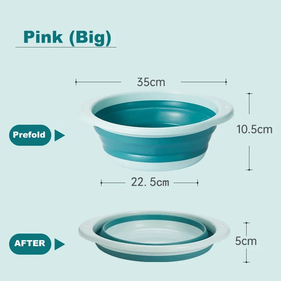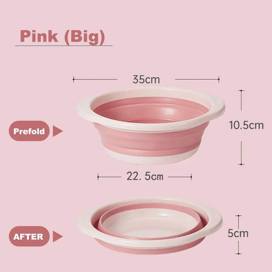 Portable Kids Washbasin – Foldable Silicone Baby Basin - A versatile and space-saving washbasin designed for babies and kids. Perfect for home use, foot baths, laundry, and kitchen tasks. Made from durable, soft silicone, it’s easy to fold, hang, and store.