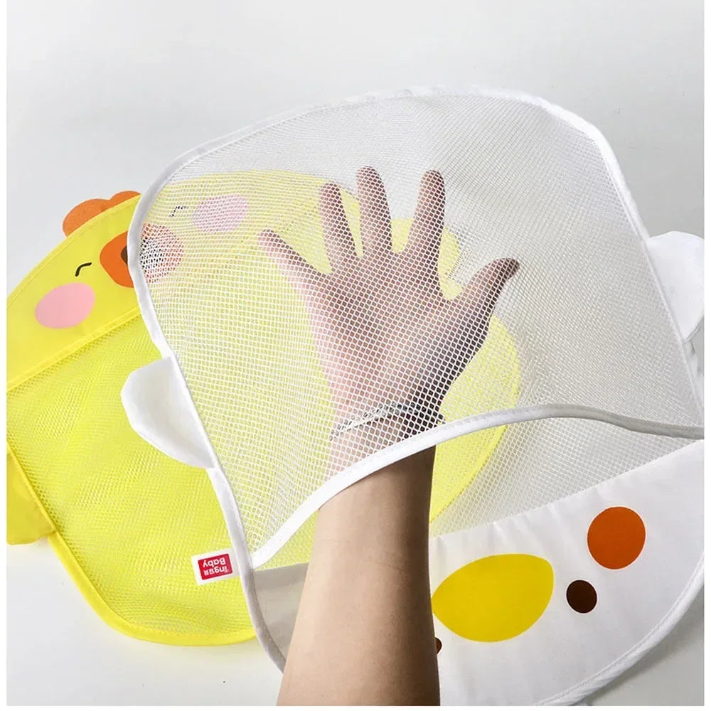 Children’s Cartoon Duck Mesh Shower Bag - Keep bath time fun and organized with this cute duck-shaped bathroom organizer. Designed with breathable mesh, it dries quickly and prevents mold build-up. The strong suction cup makes it easy to attach to tiles or glass, keeping toys and bath essentials neatly stored.