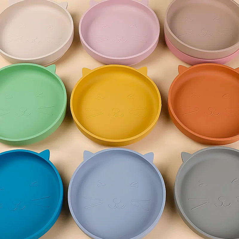 Cute Cat Baby Plate - Make mealtime fun with this silicone baby plate featuring an adorable cartoon cat design. Available in 9 vibrant colors, it’s safe, durable, and perfect for little ones learning to self-feed.