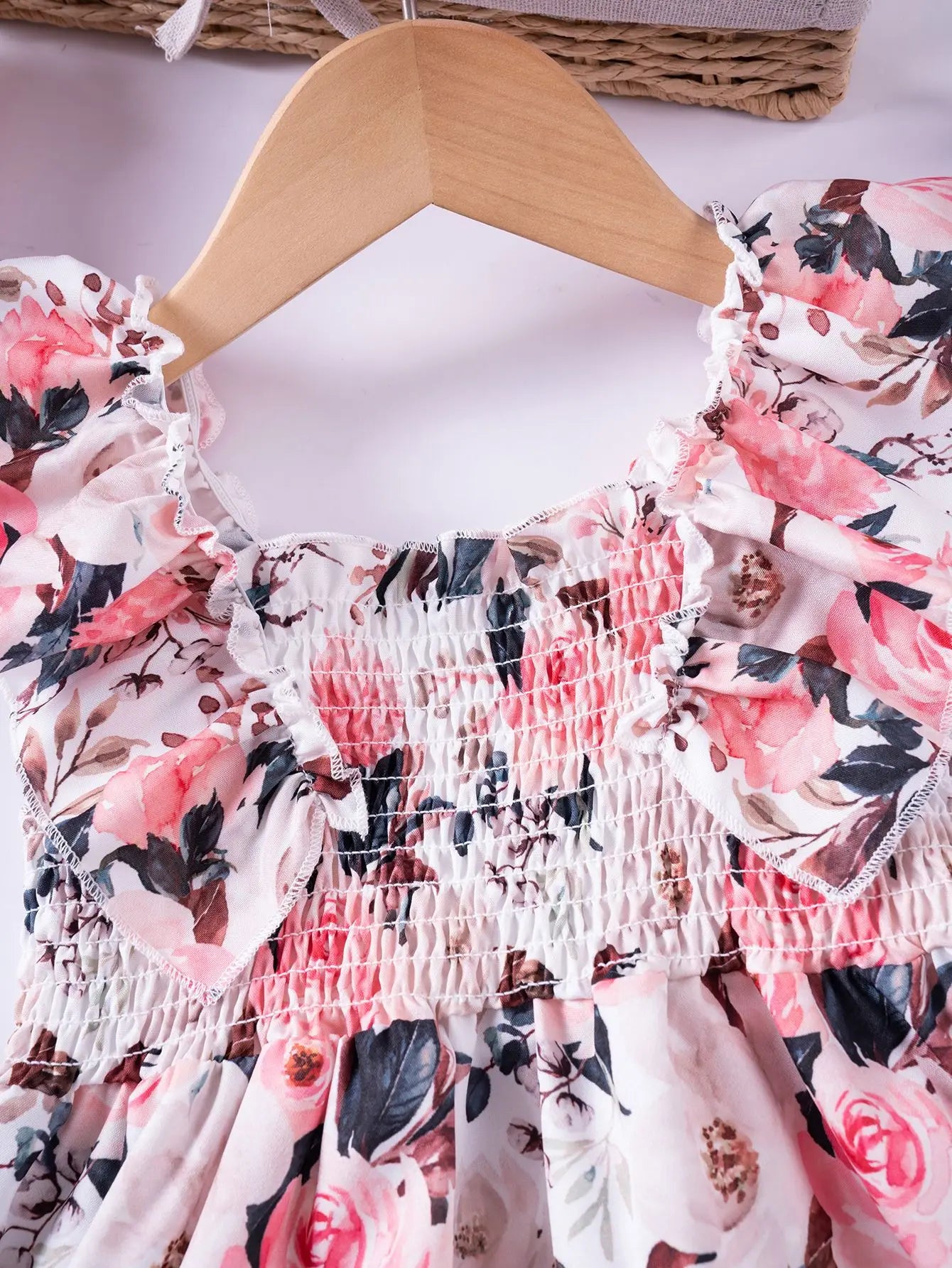 Sweet Floral Summer Dress – Ruffled Sleeves & Smocked Bodice
