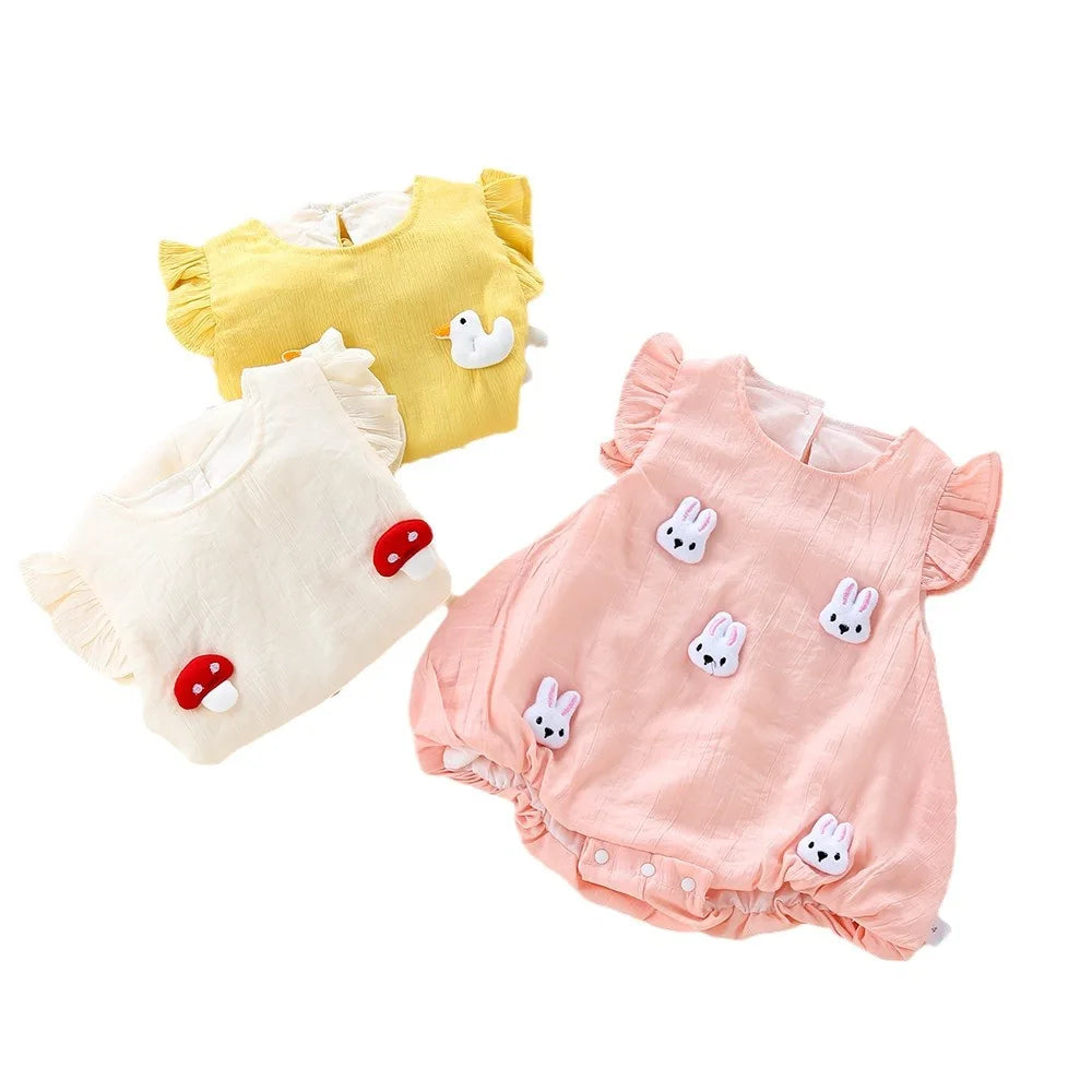 Infant Girls Summer One-Piece Cartoon Bum Coat - Keep your little one cool and comfy this summer with this adorable one-piece coat. Designed with a three-dimensional cartoon pattern, it adds a playful touch while ensuring softness against delicate baby skin. Made from lightweight, breathable fabric, it’s perfect for hot days, offering comfort without irritation. The easy-wear design makes changing quick and hassle-free, while the cute style is perfect for everyday outings or playtime.