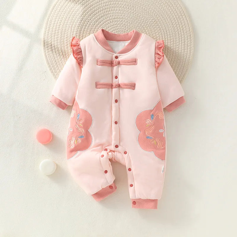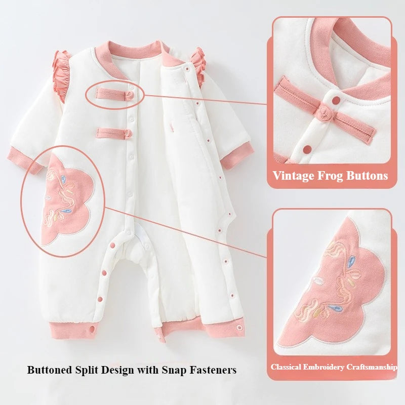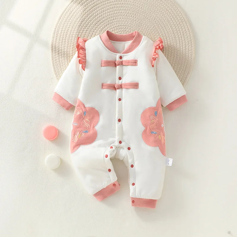 Keep your little one cozy and adorable with this Baby Cotton Onesie for girls. Crafted from soft, thickened cotton, it provides warmth and comfort for newborns. The charming country-style prints add a cute, playful touch, making it perfect for everyday wear or special moments.